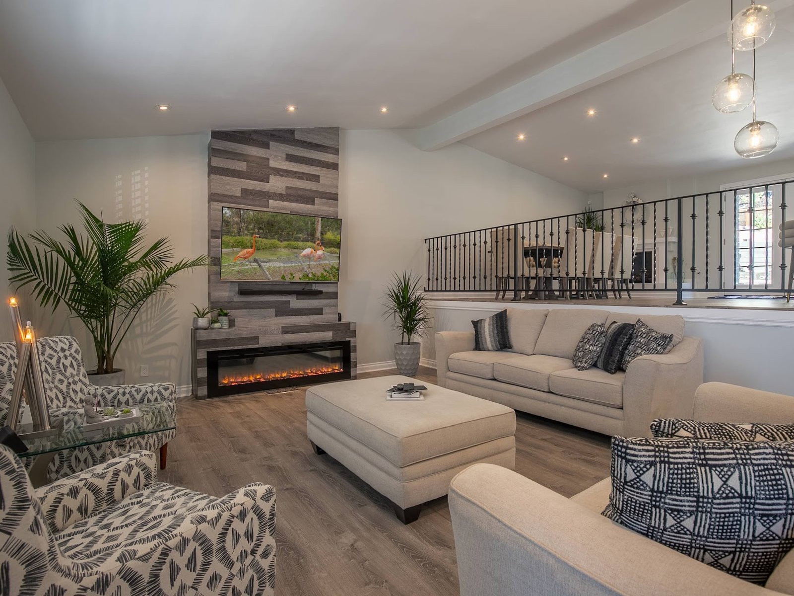 סלון יוקרתי ומרווח – עם ריהוט מעוצב, מסך גדול ופינת ישיבה נוחה לכל המשפחה.