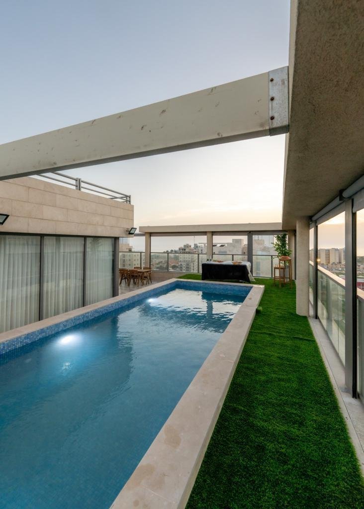 הבריכה הפרטית היא מוקד החוויה בפנטהאוז – מקום אידיאלי לצלול לתוך המים המרעננים, להתרווח מול הנוף המדהים וליהנות מרגעים של שלווה מוחלטת.